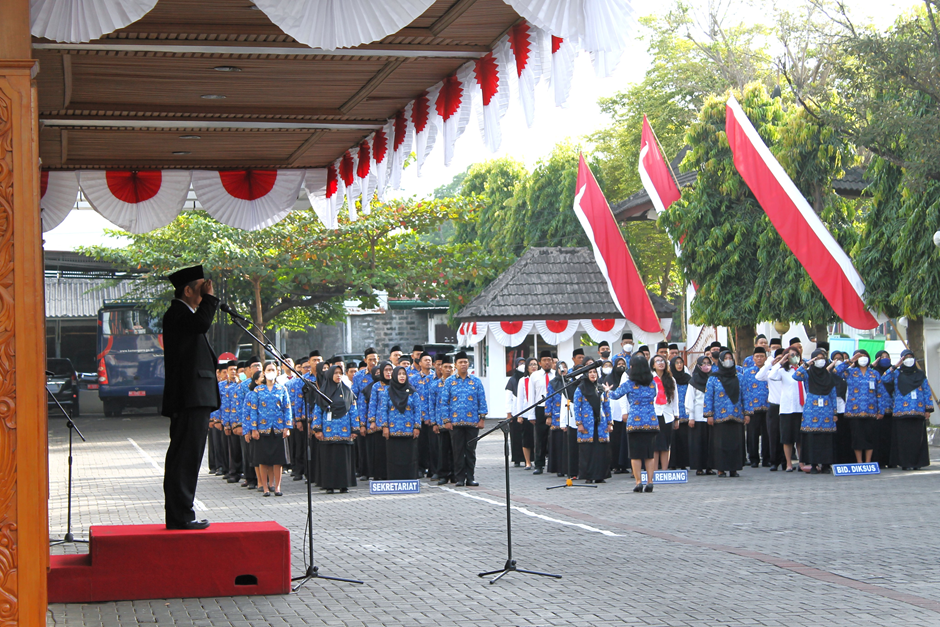 Yogyakarta (17/08/2023)– Wakil Kepala Dinas Pendidikan, Pemuda dan Olahraga (Disdikpora) Daerah Istimewa Yogyakarta (DIY) Drs. Suhirman, M.Pd menjadi inspektur pada Upacara peringatan HUT ke-78 Kemerdekaan Republik Indonesia Tahun 2023 di Lingkungan Dinas Dikpora DIY. Upacara yang dilaksanakan di Halaman Depan Dinas Dikpora DIY ini diikuti oleh seluruh pegawai di Dinas Dikpora DIY serta Unit Pelaksana Teknis (UPT) yang berada dibawah Dinas Dikpora DIY.